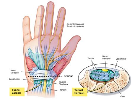 Tunnel carpale: anatomia e compressione del nervo mediano