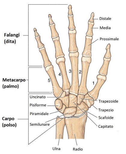 Anatomia del polso e della mano: ossa, legamenti e muscoli