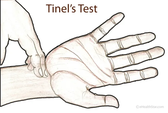 Tinel test, che scatena formicolii per percussione del nervo mediano.