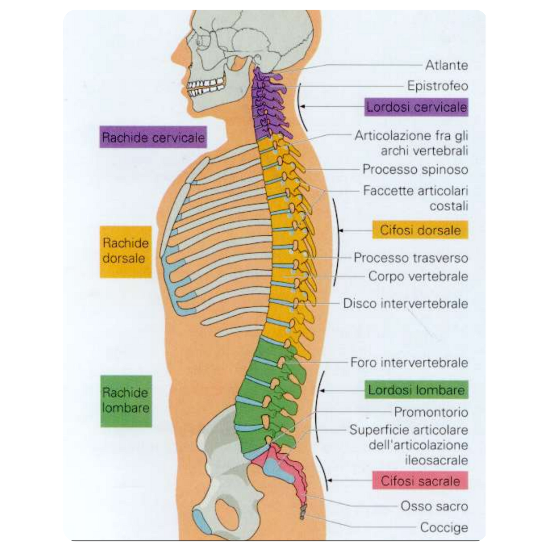 La colonna vertebrale è una delle strutture più affascinanti del corpo umano: flessibile ma robusta, dinamica ma protettiva. Il suo design riflette un perfetto compromesso tra mobilità e stabilità. È composta da 33-34 vertebre suddivise in cinque tratti, ognuno con caratteristiche anatomiche e funzionali ben precise.